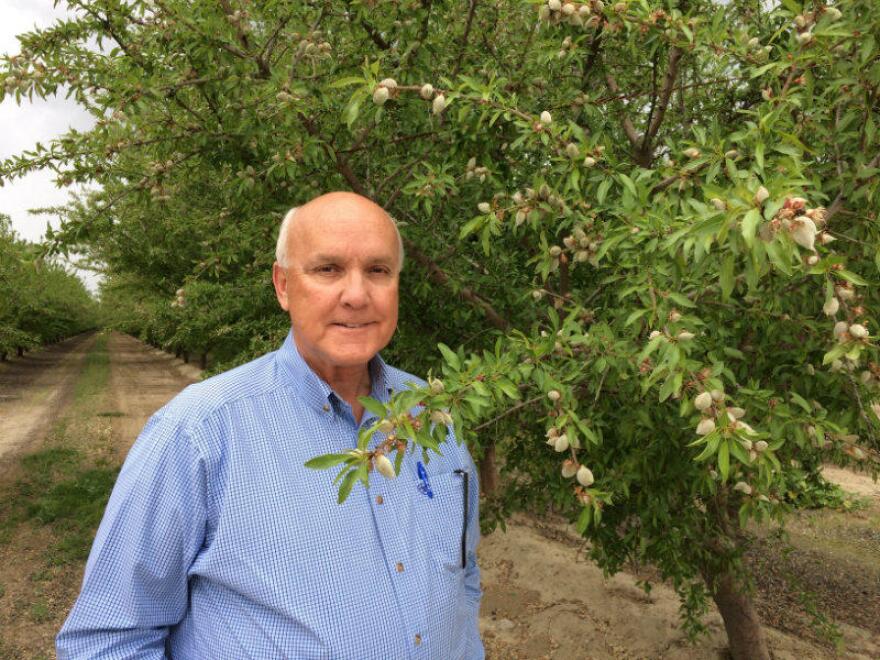 Tom Ullmann works for the Fresno County Agricultural Commissioner’s office and he’s investigating the Kerman incident. On a tour of the Kerman area, he points out one spot where honeybee colonies got hit, between two vast almond orchards.