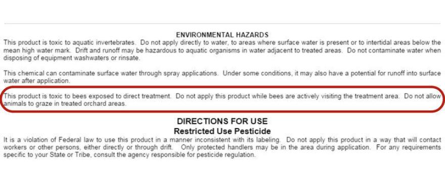 The label is the law. That means regardless of where hives are registered, growers (and pesticide applicators on staff) are required to follow the label’s language.