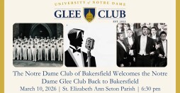 The Notre Dame Club of Bakersfield welcomes the Notre Dame Glee Club back to Bakersfield. The Glee club is a 60-voice all-male choir, and is one of this country's premier university choirs.