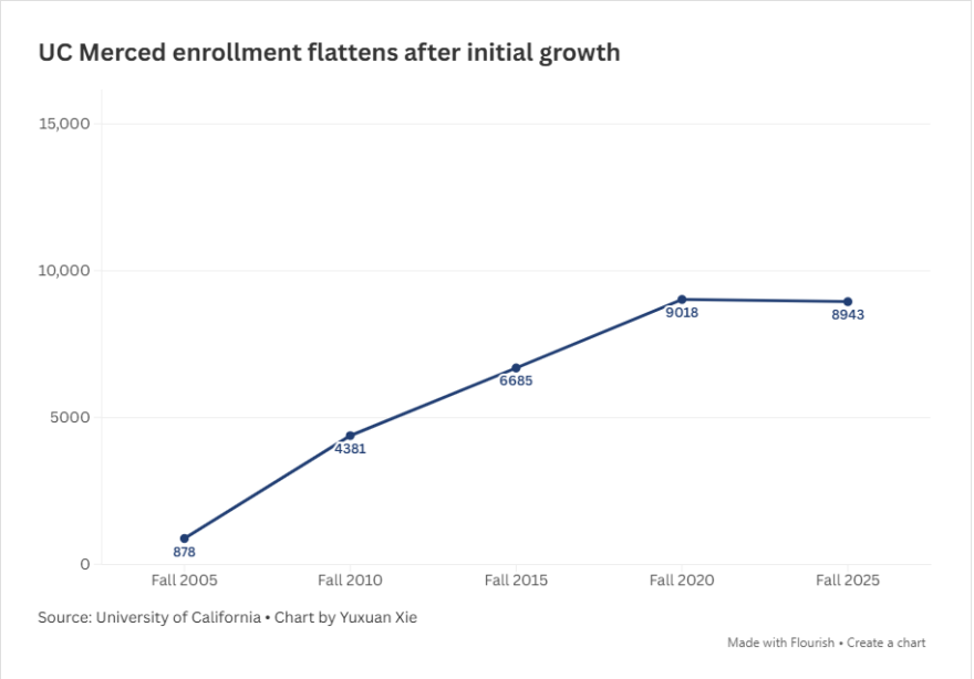 Campus officials believe they will see growth beginning this fall. Based on the number of freshmen and transfer students who have indicated intent to enroll, Merced is tracking above where it was at this point in 2025. The campus is continuing to build and expand programs, including a new partnership with UC San Francisco that allows students to work toward a bachelor’s degree at Merced and then an MD at UCSF’s Fresno campus.