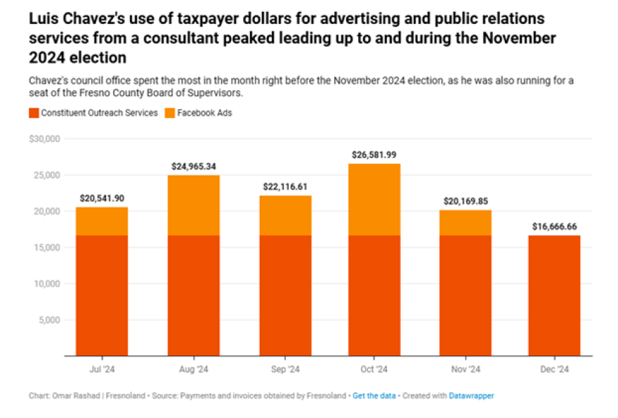 A Fresnoland review of line-item invoices found that during an election year, Chavez’s use of taxpayer dollars for advertising and public relations services from Tavlian’s company reached a high, as the consultant put out social media ads for Chavez and did outreach to residents in his district on his behalf.